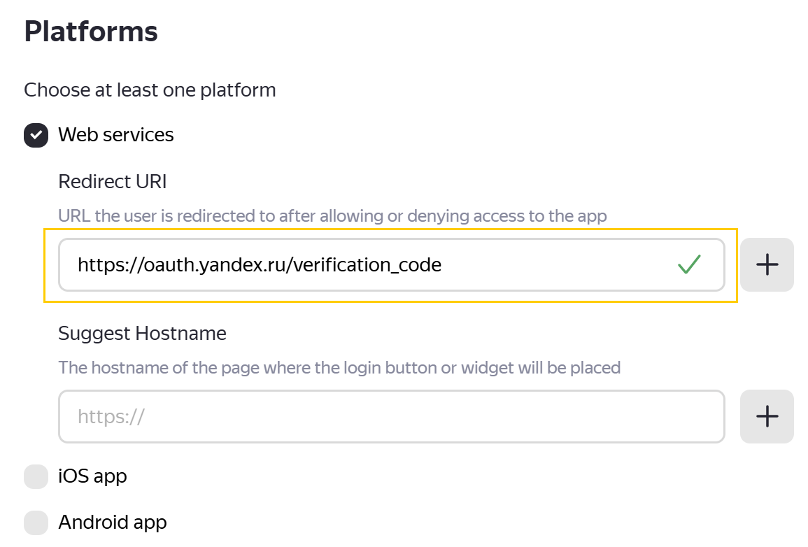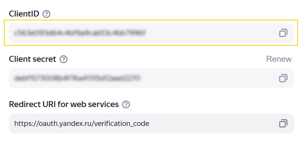 Specify a contact email address. At the bottom of the page, click Create app to open the External app access window in Yandex ID.