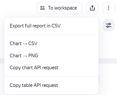 PNGformat. - Copy chart API request — Displays the query text for exporting data from the chart using the Reporting API.