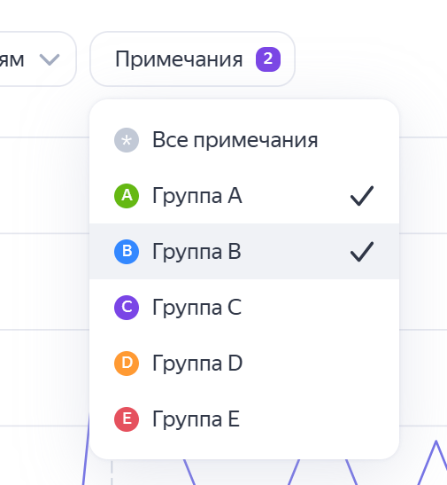Примечания помогают отслеживать важные события и связанные с ними изменения статистики приложения. Примечания отображаются в отчетах AppMetrica и на виджетах типа График в воркспейсах.