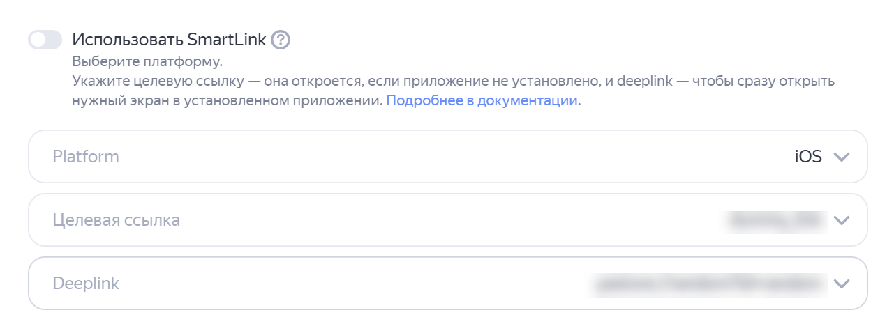 Если рекламный партнер просит использовать прямую ссылку на платформу и deeplink, опцию SmartLink нужно отключить.