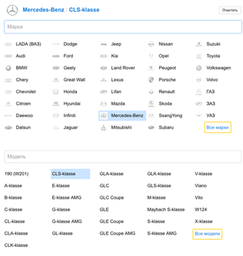 Для легковых машин → убедитесь, что вы полностью посмотрели список марок и моделей.