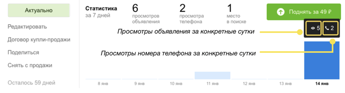 - просмотры номера телефона и объявления.