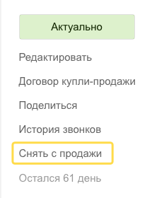 - нажмите Снять с продажи в левом блоке меню;