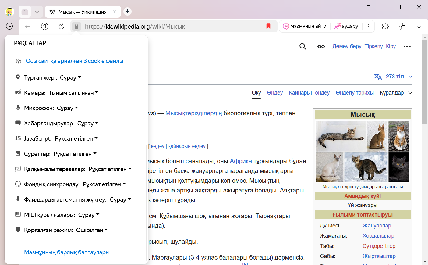 Браузер барлық орындалатын және мұрағаттық файлдарда вирустардың бар-жоғын тексереді, зиянды бағдарламалық жасақтаманы тарататын беттерді бұғаттайды.
