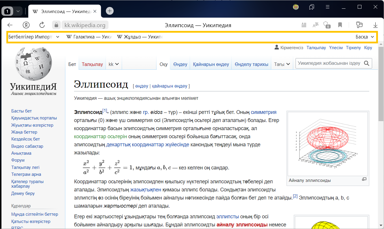 Соңғы қойындысында — егер сіз жақында бетбелгі қосқан болсаңыз.