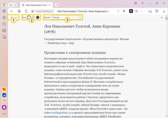 Мәтінге орын босату үшін, экраннан Яндекс Браузердің бета-нұсқасының жоғарғы панелін алып тастауға болады. Ол үшін толық экран режиміне F11 батырмасын басу арқылы өтесіз. Толықэкрандық режимінен шығу үшін қайтадан F11 батырмасын басыңыз.