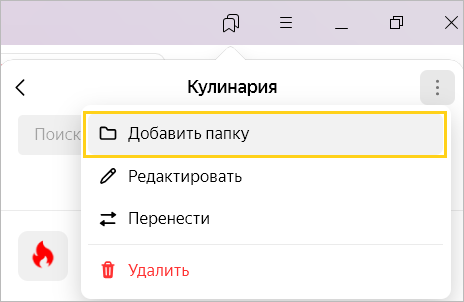Справа от Закладки нажмите → Добавить папку.