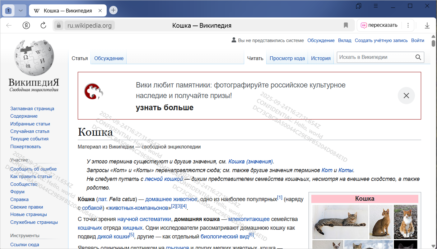 В расширенной версии Браузера для организаций можно добавлять на заданные страницы водяные знаки в виде QR-кодов или текста. В них указаны данные, по которым можно опознать устройство и пользователя. Таким образом Браузер помогает защититься от утечки данных с рабочих ресурсов.