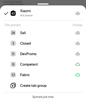 — to store the group in the cloud. It will be available from any of your devices where Yandex Browser is installed and syncing is enabled.