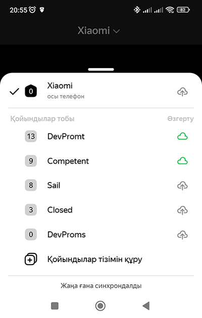 •  — синхрондалған құрылғыларыңыздағы бұлттық;