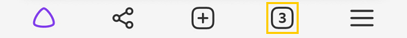 1. Қойындылар саны көрсетілген таңбаға басыңыз (, егер үш қойынды ашық тұрса).