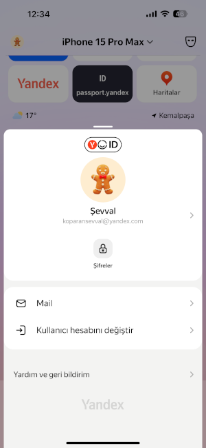 (profil portresi): Yandex ID sayfanızı açın.
