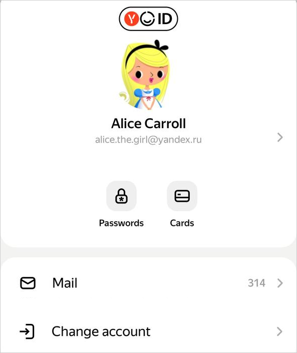 Logging in gives you quick access to your personal data (such as passwords and cards), Yandex services, and frequently used Yandex Browser features.