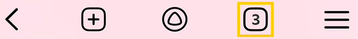 1. Нажмите значок с количеством вкладок (, если открыто три вкладки).
