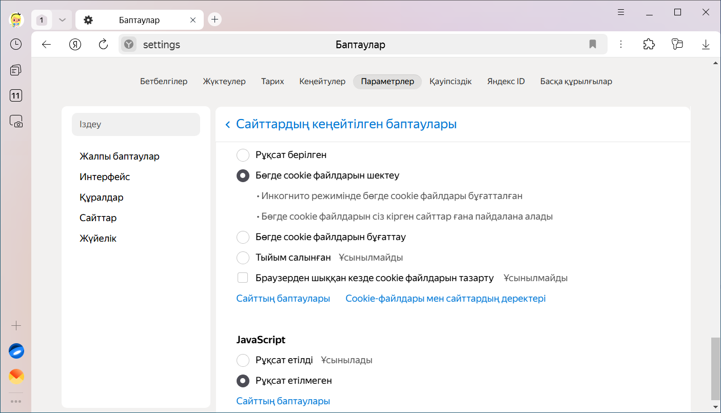 JavaScript бөлімінде Тыйым салынған опциясын қосыңыз.
