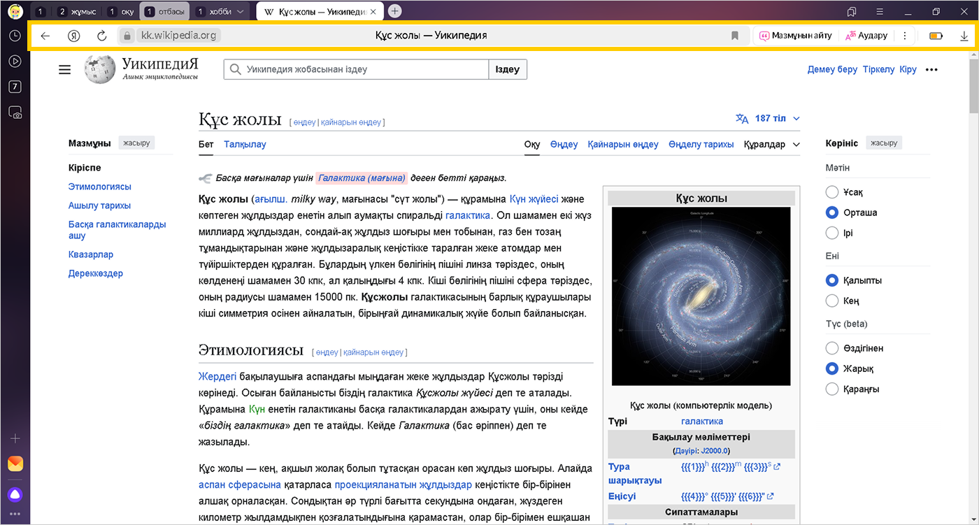 Мекенжай жолағына іздеу сұранымдары енгізуге болады — Браузер сізге не керектгіні өзі түсінеді.