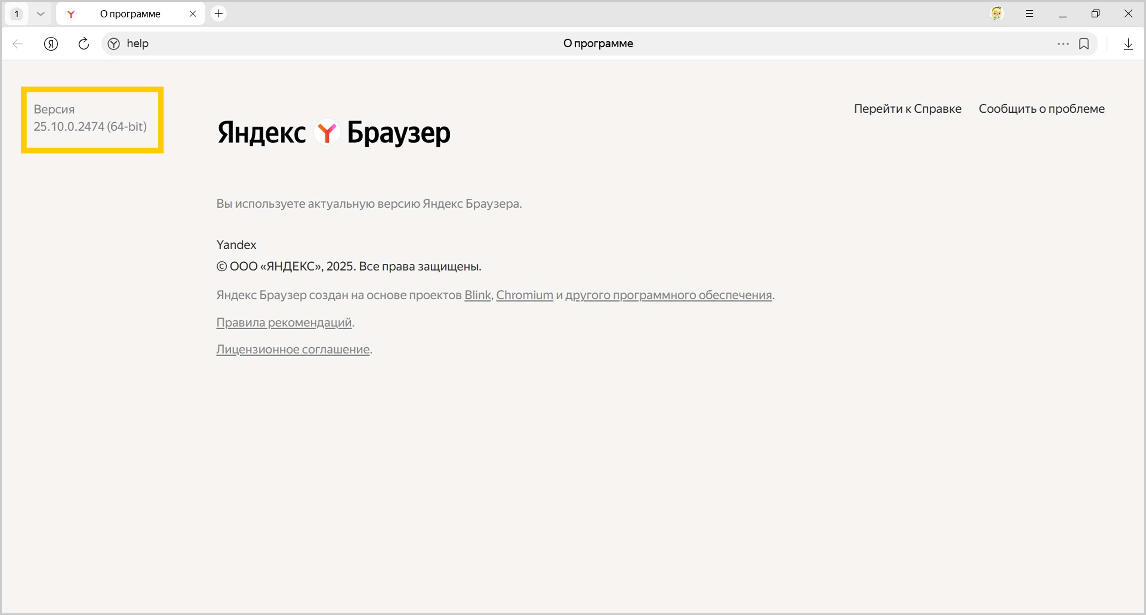 Нажмите Настройки Яндекс Браузера → Помощь → О Браузере.