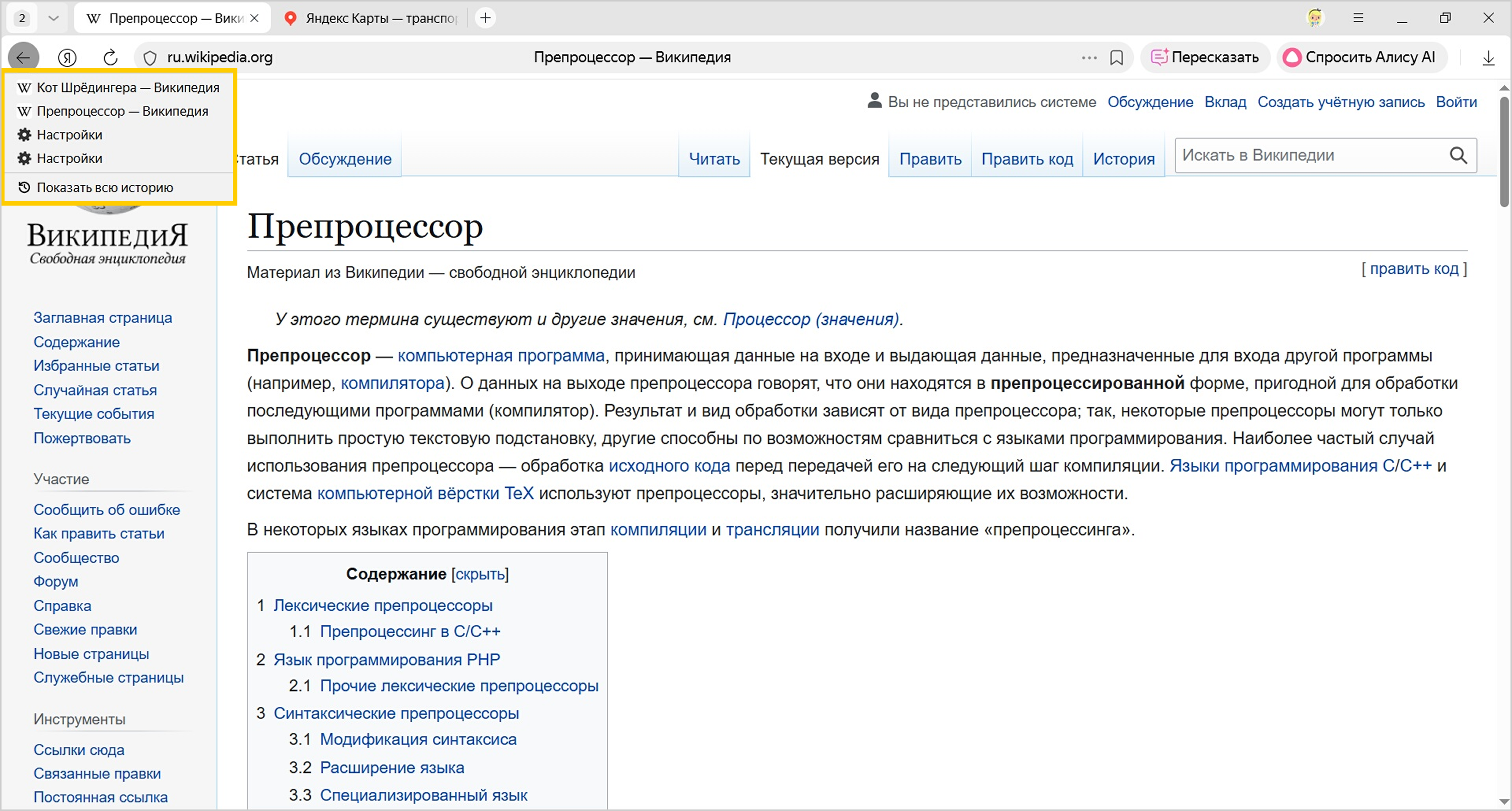 Чтобы просмотреть список ранее открытых на вкладке страниц: