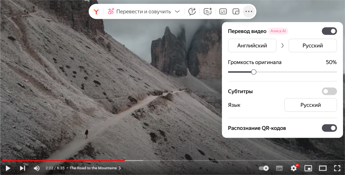 Браузер умеет переводить видео в прямом эфире (стримы, прямые трансляции). На YouTube-каналах вы можете смотреть трансляции на русском языке в режиме реального времени.
