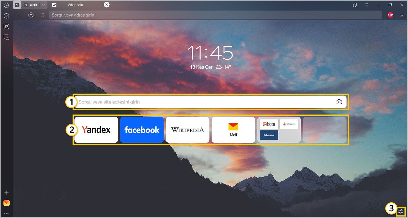 simgesine tıkladığınızda Yandex Browser yeni sekme ekranı açılır. Tüm güncel bilgiler burada yer alır. Yeni sekmenin görünümü ve içeriği ayarlanabilir.