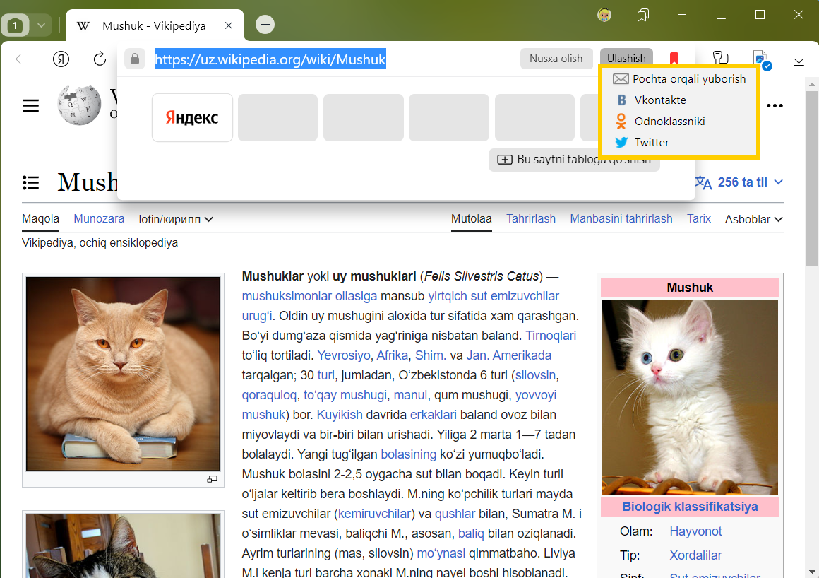 • Sahifa havolasini do‘stlar bilan baham ko‘rish uchun Baham ko‘rish tugmasini bosing va ijtimoiy tarmoq yoki pochtani tanlang.