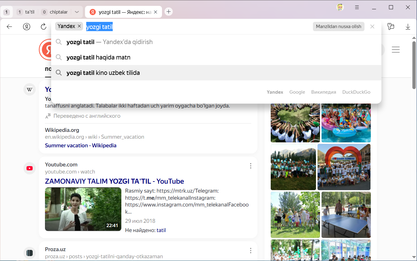 Qidiruv natijasi Yandex Rasmlar sahifasida ochiladi.
