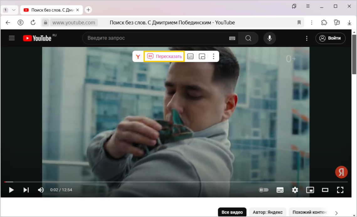 Videoda Qayta hikoya qilish yoki tugmasini bosing. Qayta hikoyalash qalqib chiquvchi oyna rejimida asosiy fikrlar va vaqt kodlari bilan sahifada ishga tushadi.