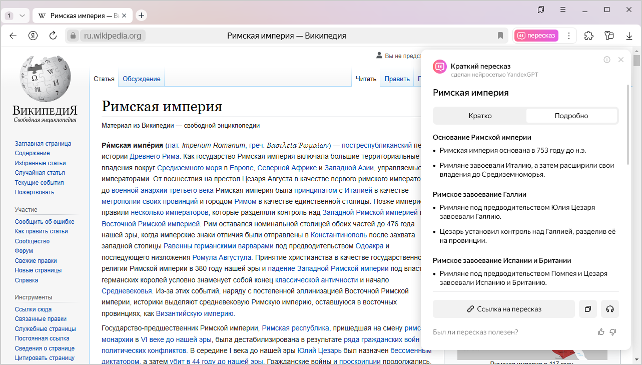 YandexGPT neyrotarmogʻi istalgan narsani: istalgan uzunlikdagi matn, maqola yoki hujjatni, shuningdek, YouTube, Zen, Rutube va VK platformalaridagi videolarni aytib beradi. Materialga havola qoʻshing yoki qurilmangizdan DOC, PDF yoki TXT formatidagi faylni yuklab oling, shunda neyron tarmoq asosiy fikrni tezda tushunishingiz uchun uni ajratib koʻrsatadi.