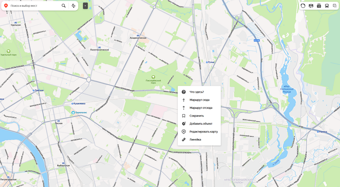 Нажмите правой кнопкой мышки точку на карте, где находится ваша организация.