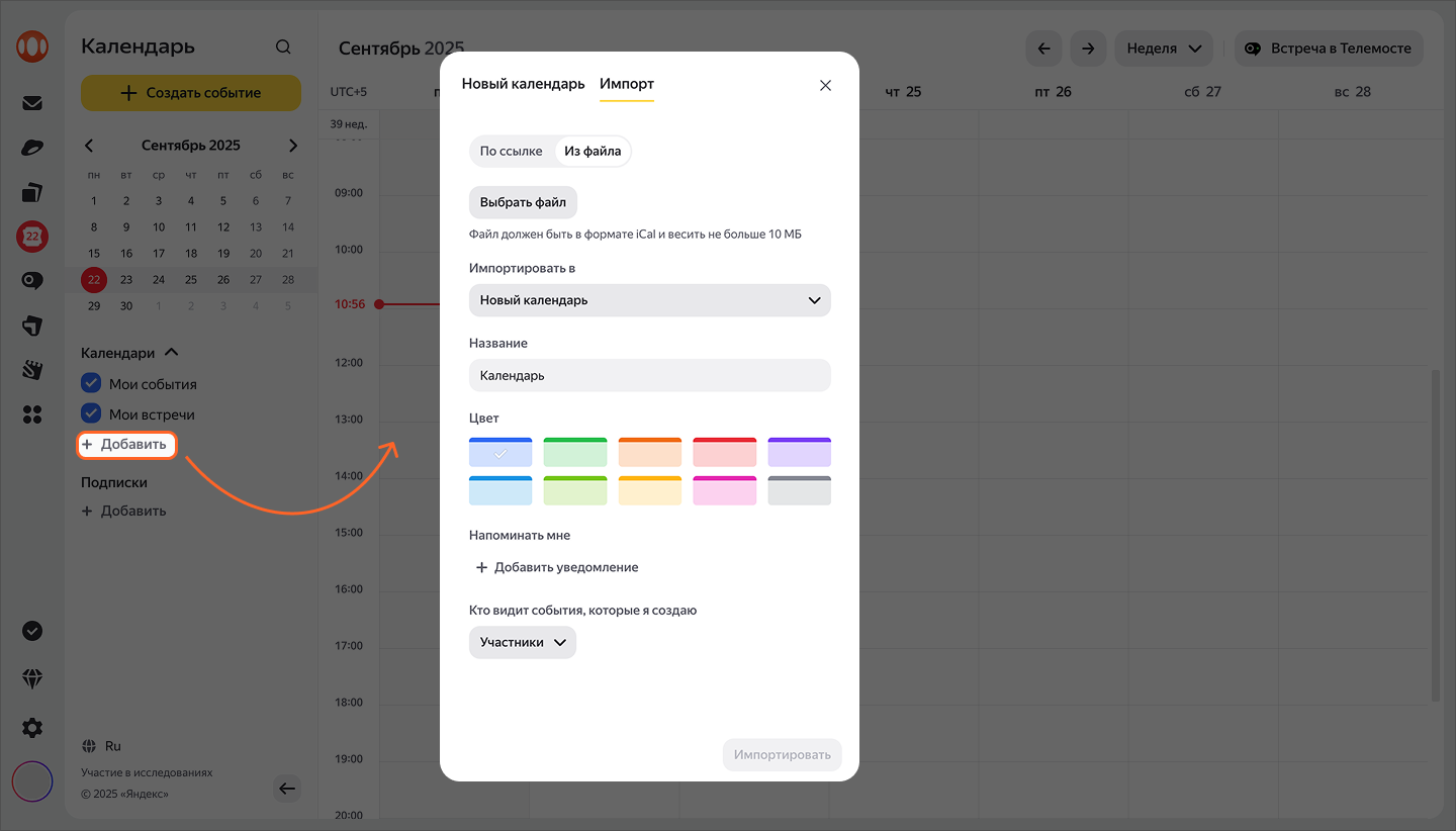 При импорте события скопируются в Яндекс Календарь, но не будут синхронизироваться с календарем на другом ресурсе. Например, если вы добавите событие только в другой календарь, оно не появится в Яндекс Календаре. Если вам нужно, чтобы календари обменивались событиями, настройте синхронизацию. Как это сделать.