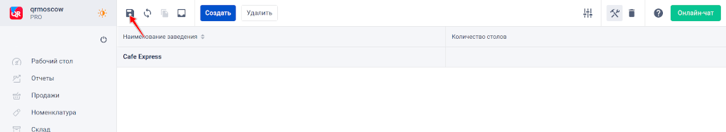 После внесения всех настроек оплаты по QR-коду для заведения нажмите Сохранить на верхней панели инструментов: