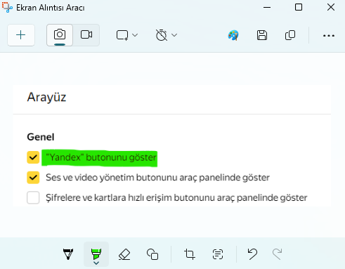 «Makas» masaüstünün bir kısmının veya tüm ekranın ekran görüntüsünü almanıza olanak tanır.