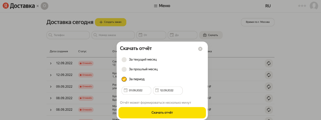 В отчете можно узнать, сколько доставок вы заказали, какие товары и куда отправили и сколько это стоило.