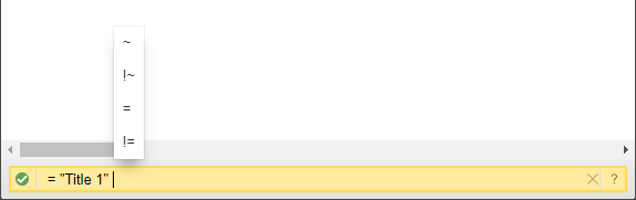 Start entering your search term following the = symbol. When you do this, the icon appears in the search bar. You can choose field and operator names from the popups.