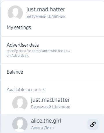Once access is requested, a notification is sent to the specified account in Yandex Direct. The account owner can accept or reject the invitation by clicking on their username in the menu on the left.