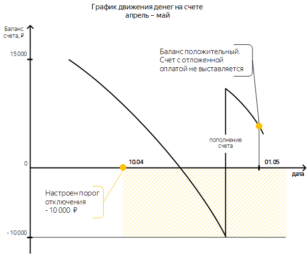 For example, Maria and Ivan place ads in Yandex Direct and have the deferred payment option of 10,000 rubles.