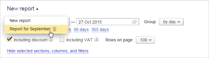 Save a report to use it again in the future. Your saved report will appear in a drop down list: