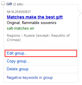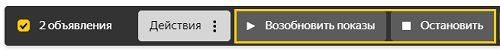 To perform an action **with individual ads in a group, **select several desired ads and click Actions.