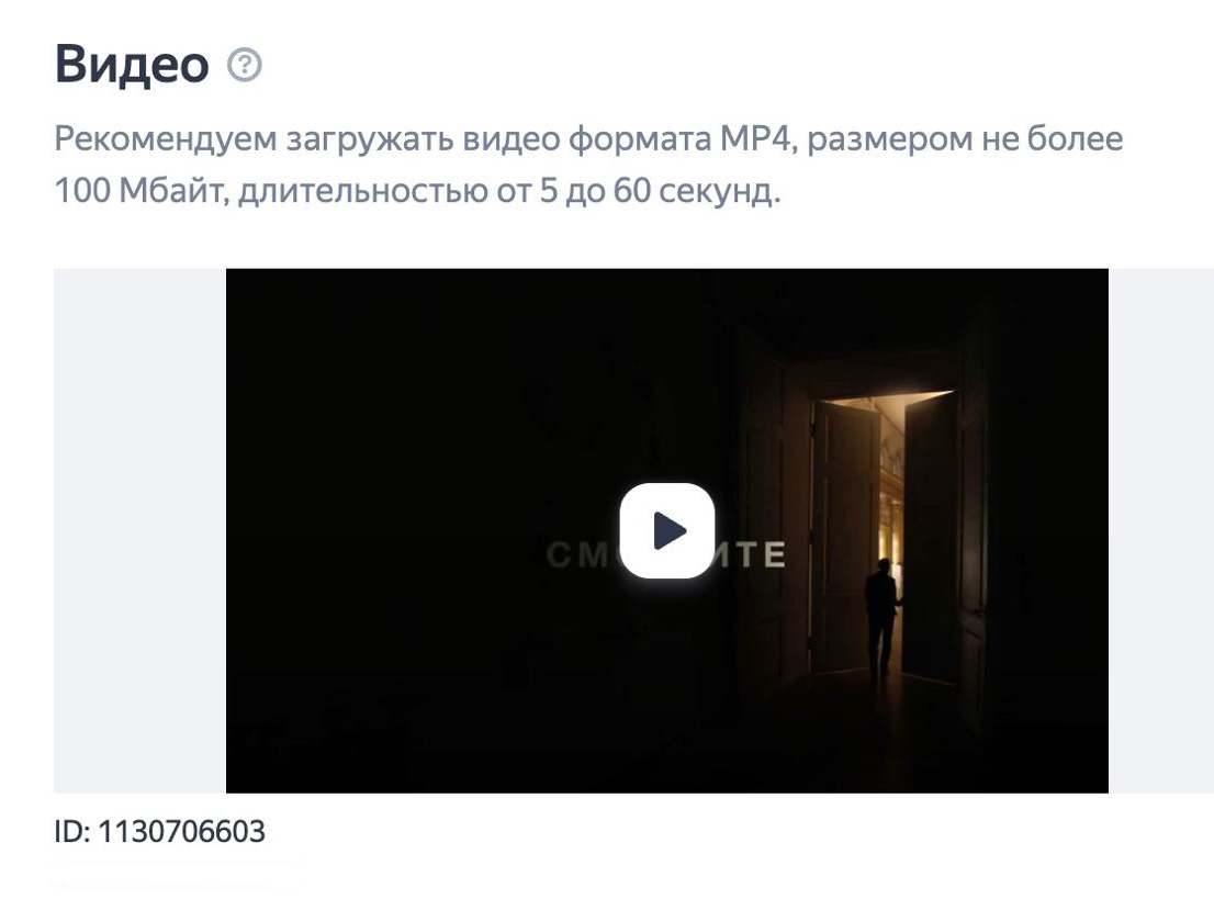 На странице редактирования объявления в блоке Видео ID видео указано под роликом.