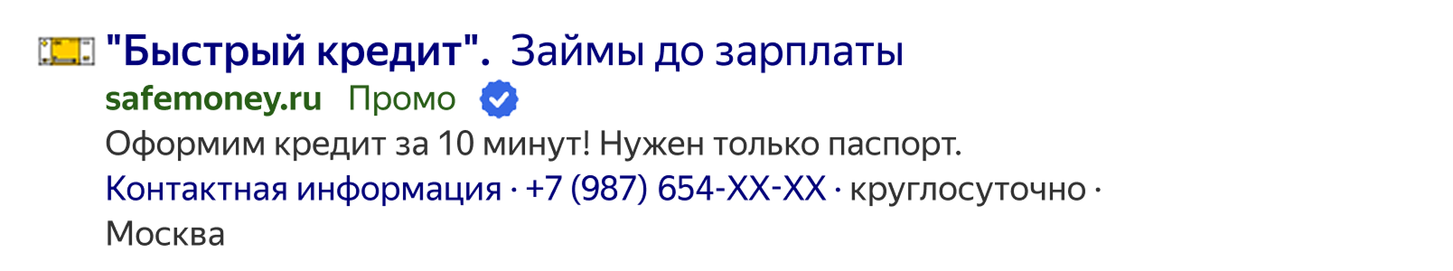 В объявлении могут показываться другие метки и знаки, которые дают пользователям дополнительную информацию о сайте. Например, знак популярного сайта