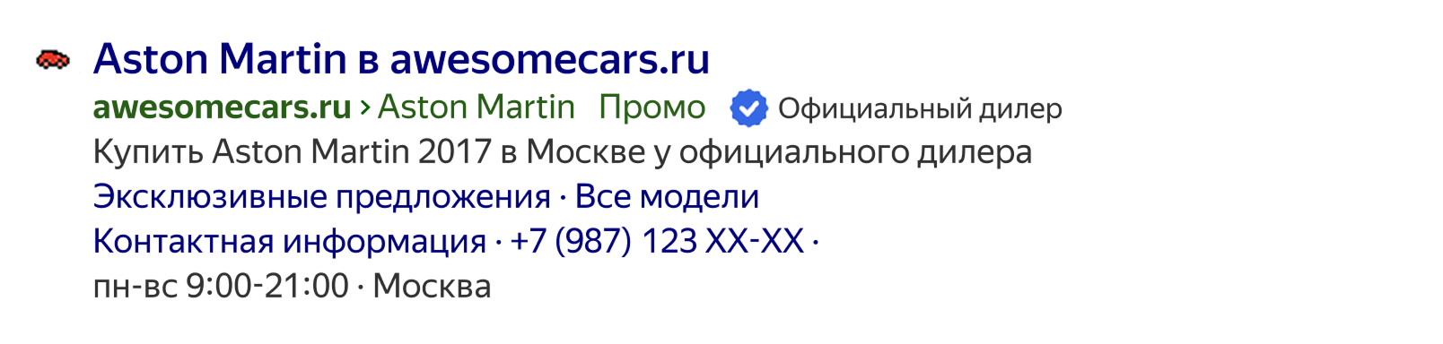 В объявлениях автомобильной тематики может показываться признак официального дилера из Авто.ру.