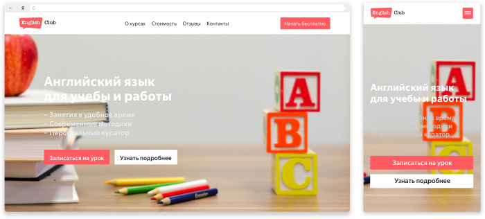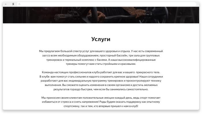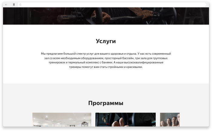 Если вы выбрали центральное расположение всех элементов страницы, старайтесь соблюдать его во всех секциях. Так пользователям будет проще воспринимать контент вашей страницы.