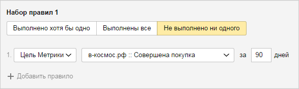 Всего можно добавить не более 250 правил. Помните, чем больше правил в условии формирования сегмента, тем меньше охват аудитории.