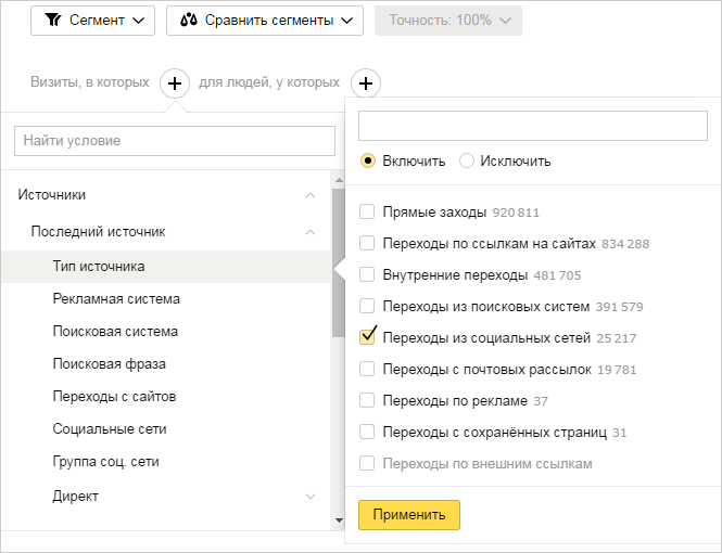 Так можно создать сегмент переходов из социальных сетей