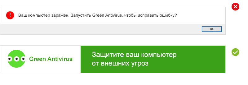 1. Баннер не должен маскироваться под элементы пользовательского интерфейса — например, под системное окно Windows.