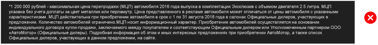 Правовая информация отображается не менее трех секунд, а также доступна далее по наведению курсора.