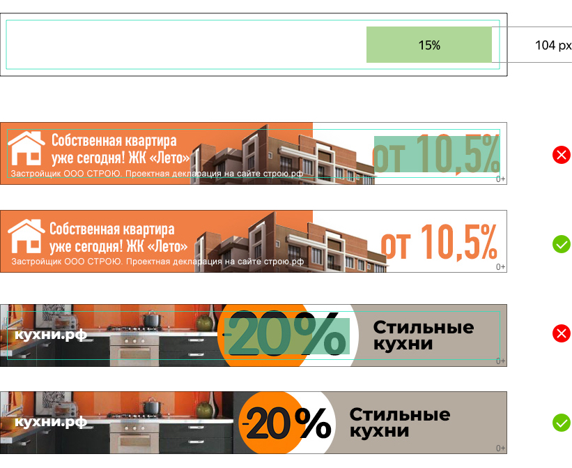 • 104 пикселя, если текст занимает не больше 15% баннера;