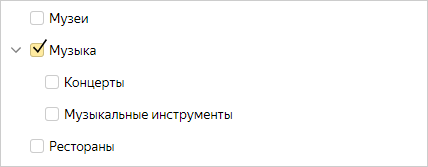 Помните, что в дереве интересов обобщающий интерес шире, чем совокупность вложенных. Например, «Музыка» объединяет не только тех, кто интересуется музыкальными инструментами и концертами, но и пользователей онлайн-сервисов для прослушивания музыки.