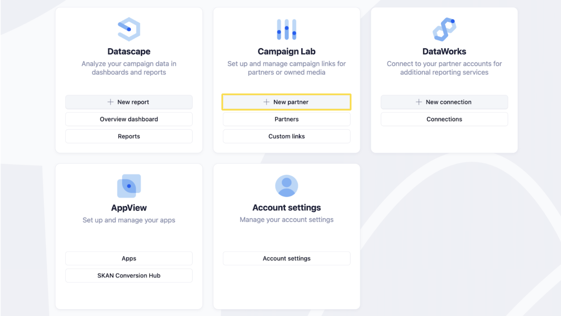 Ana sayfada Campaign Lab bloğunda New Partner'a tıklayın.