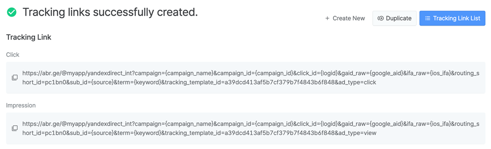 İzleme sistemini Direct’teki kampanyalarla ilişkilendirmek için reklamlara bir izleme bağlantısı eklenmelidir. Bu arada, mobil uygulama kodunda izleme sistemi SDK’sı belirtilmelidir. Bu, kurulumlar ve başlamalar hakkında sisteme bilgi ileten bir yazılım modülüdür.